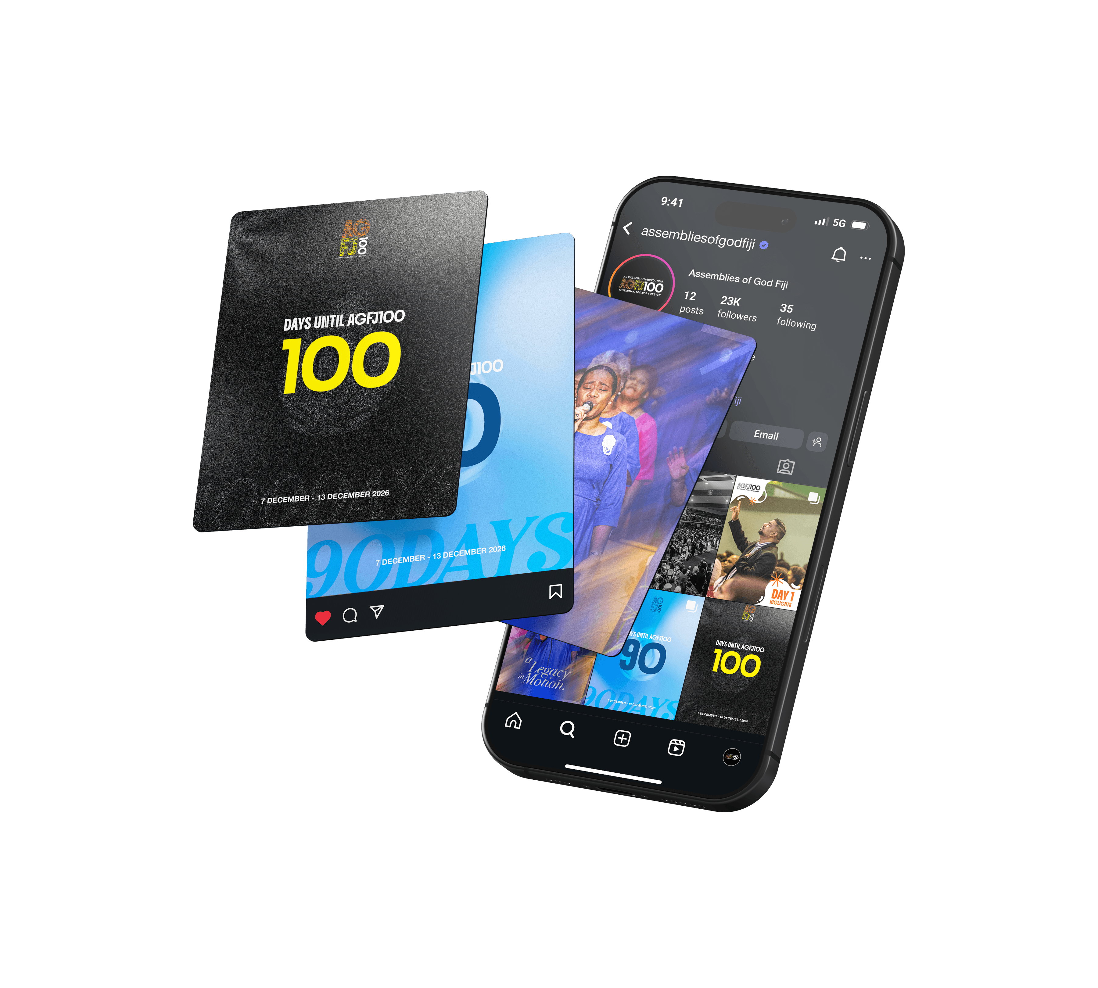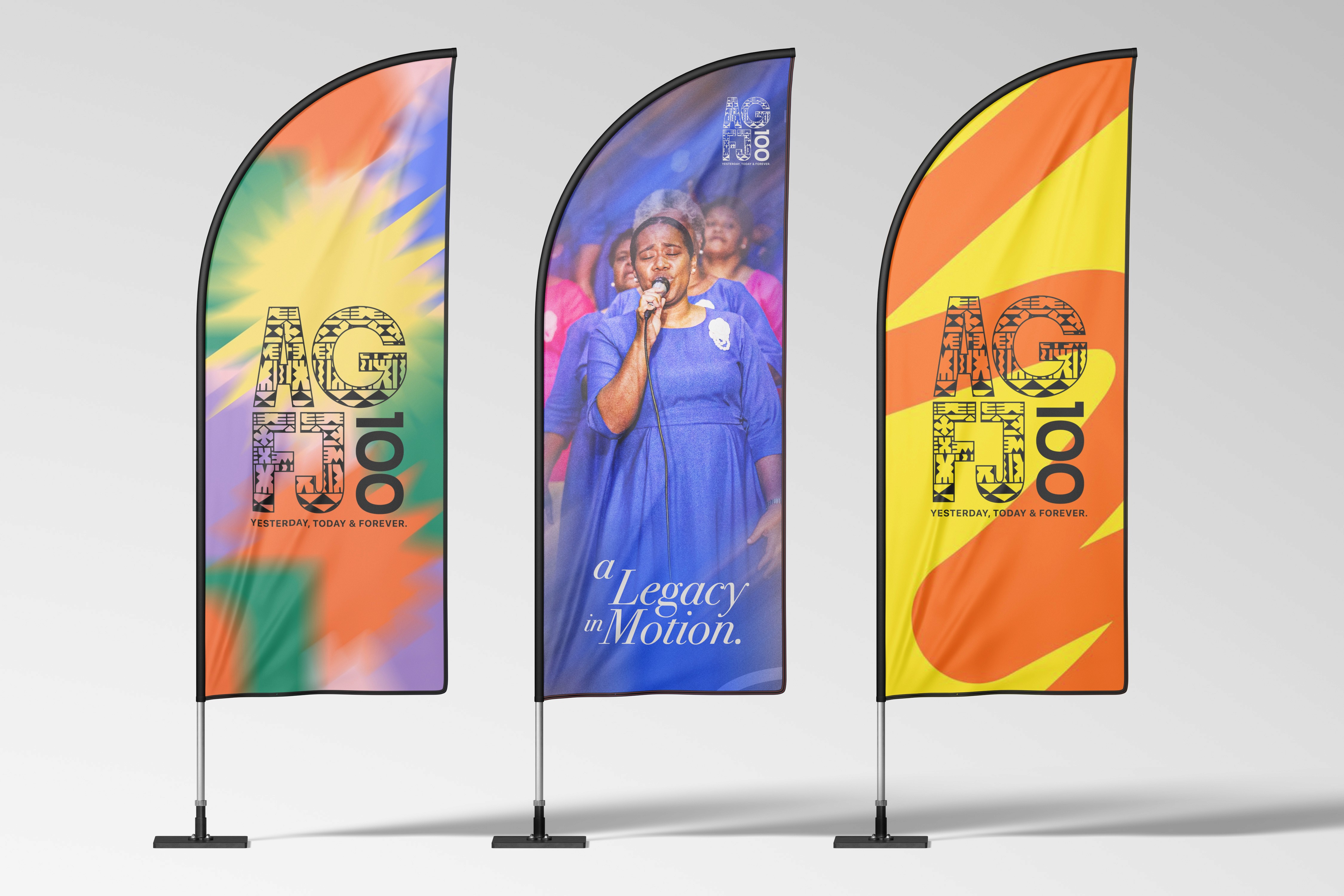 AGFJ100 was created to honor a century of faith while standing boldly within a modern, global visual landscape. I developed a refined identity system that blends traditional Fijian Masi-inspired motifs with contemporary typography, capturing both heritage and forward movement. The result is a timeless centennial mark that feels sacred, purposeful, and designed to live across both physical and digital expressions of celebration.